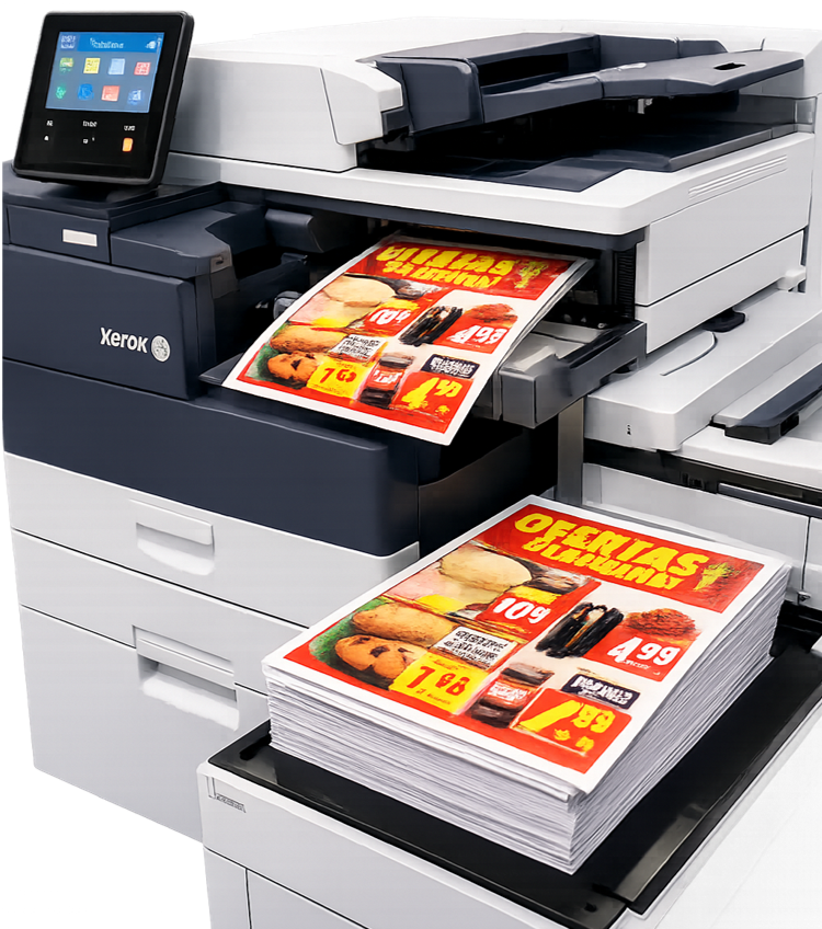 • Sim! A CMYK TECH é especializada em soluções para redes de supermercados, oferecendo equipamentos ideais para impressão de encartes promocionais com alta produtividade.